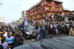 Arrivé au Palais du Peuple, le Président Alpha Condé a été l’objet d’un bain de foule au cours duquel il a marché jusqu’au Palais Sékhoutouréya.