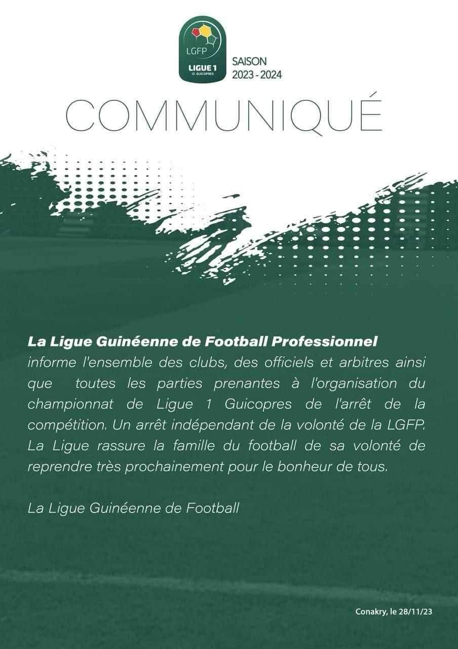 Malgré qu’elle ait pris cette décision, la Ligue Guinéenne de football ne donne pas de raisons, mais indique que c’est indépendamment de sa volonté.