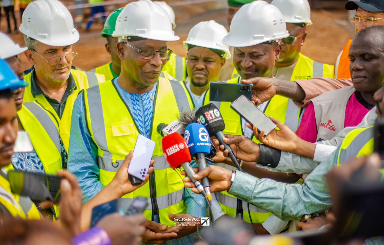 En effet, tout a commencé par la présentation du projet, une visite de terrain conduite par le Directeur Général de la SOGEAC s’en est suivie. Sur le chantier, Amadou Oury Bah en compagnie du directeur général de la SOGEAC ont visité par exemple le bâtiment administratif de la SOGEAC, le bâtiment de la porte d’entrée de l’air de trafic mais aussi la cantine et bureaux.