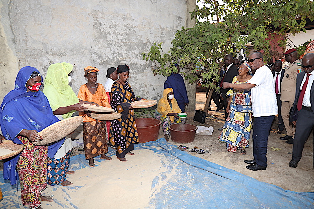 Le Président Alpha Condé au centre de traitement du fonio