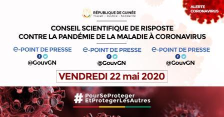 Conakry, 21 mai 2020 – Le Comité scientifique de riposte contre la pandémie de la maladie à Coronavirus tiendra un point de presse en ligne ce vendredi 22 mai 2020 à partir de 11h30. Le point de presse s’articulera autour de points qui seront précisés dans un prochain communiqué. Compte […]